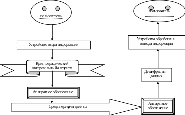 Шифрование производится по установленному алгоритму, ключ которого может меняться в соответствии с пожеланием пользователей, однако важнейшим параметром шифрования является время на дешифрацию Tдеш, которое понадобилось бы вычислительной машине на обработку всех вариантов представления информации. Оно определяется в первую очередь производительно мощностью самой машины по характеристике количества производимых в секунду операций и от длины ключа. Рассмотрим самый просто вариант: