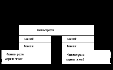 В соответствии с базовой эталонной моделью взаимодействия открытых систем мост описывается протоколами физического и канального уровней, над которыми располагаются канальные процессы. Мост опирается на пару связываемых им физических средств соединения, которые в этой модели представляют физические каналы. Мост преобразует физический (1A, 1B) и канальный (2A, 2B) уровни различных типов (рис. 9.4). Что касается канального процесса, то он объединяет разнотипные каналы передачи данных в один общий.