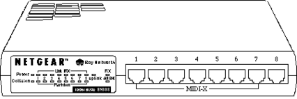 На рис. 9.3 показан внешний вид концентратора Концентраторы поддерживают технологию plug and play и не требуют какой-либо установки параметров. Необходимо просто спланировать свою сеть и вставить разъемы в порты хаба и компьютеров.