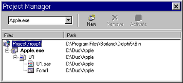 На рис. Показано окно Project Manager с открытым проектом Apple.