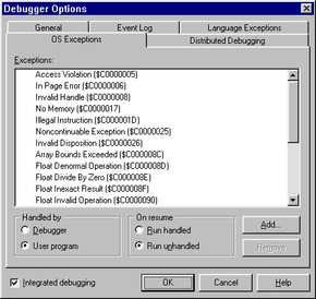 Установка параметров отладчика выполняется с помощью команды Tools / Debugger Options (Параметры отладчика).