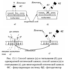 Методы оптической записи на поверхности подвижного носителя основаны на способности некоторых материалов изменять отражательные свойства на участках, которые подвергались тепловому, магнитному или комбинированному воздействию.