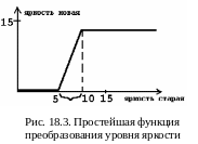 Метод точечных преобразований основан на “растягивании” уровня яркости по всему диапазону, используя функцию преобразования (рис. 18.3).