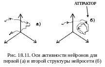 где N -количество нейронов, с которыми связан i-й элемент; Jij - вес связи (сила связи); i - порог срабатывания i-го нейрона. На осях откладывается активность нейронов (у нас 3 нейрона) (рис. 18.11).