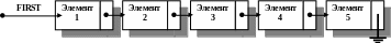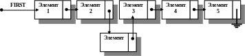 десь FIRST — переменная связи, указывающая на первый узел в списке.