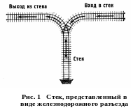 Иногда аналогия с переключением железнодорожных путей, предложенная Э. Дейкстрой, помогает понять механизм стека. На рис. 2. Изображен дек в виде железнодорожного разъезда.