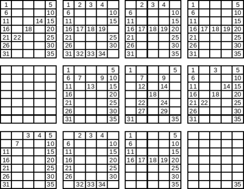 A 2,3,4,6,10,11,15,16,17,18,19,20,21,25,26,30,31,35