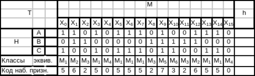 Определим классы эквивалентности для этого множества А = {Х0, Х1, ...., Х15 } разобьем на классы эквивалентности, получим 6 классов