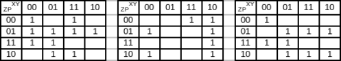 Проведем минимизацию полученных ФАЛ при помощи карты Карно и представим их в ДНФ. Для этого попытаемся оптимальным образом объединить 0-кубы в кубы большей размерности. Клетки, образующие k-куб, дают минитерм n-k ранга, где n - число переменных, которые сохраняют одинаковое значение на этом k-кубе. Таким образом, получим ДНФ выбранных ФАЛ.