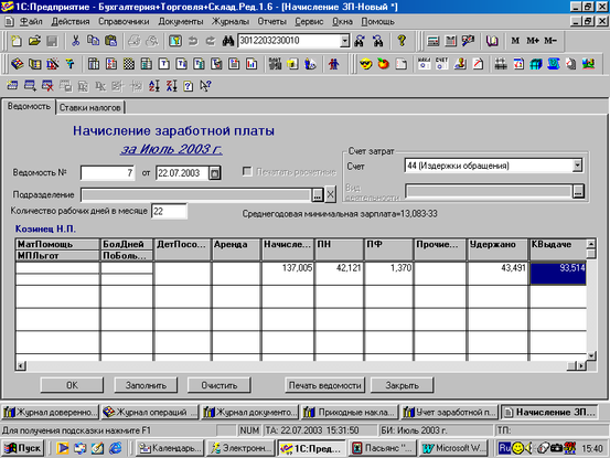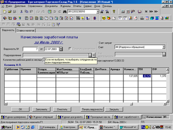 Приложение 4. Технология начисления заработной платы