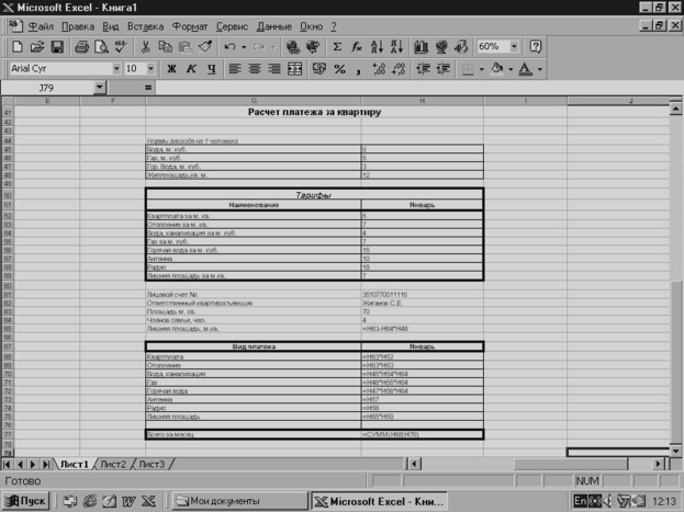 ис. 5 Макет таблицы по расчету квартплаты