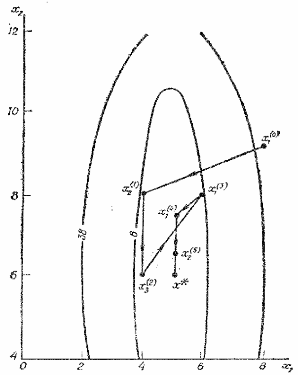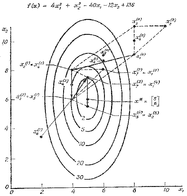 Поскольку f(4,8)=82(0) на x6(0) и полагаем x6(0)=x2(1) на следующем этапе поиска.