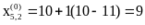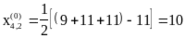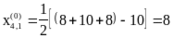 На нулевом этапе поиска, k=0, вычисляя значения функции, получаем f(8,9)=45, f(10,11)=125 и f(8,11)=65. Затем отражаем x2(0)=[10 11]T через центр тяжести точек x1(0) и x3(0) [по формуле (1)], который обозначим через x4(0):