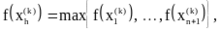 Пусть , является i-й вершиной (точкой) в En на k-м этапе поиска, k=0, 1, …, и пусть значение целевой функции в x(k)i равно f(x(k)i). Кроме того, отметим те векторы x многогранника, которые дают максимальное и минимальное значения f(x).