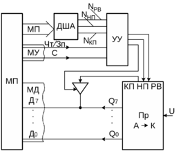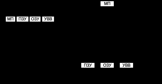 - устройством управления памятью и вводом-выводом, входящим в состав МП;