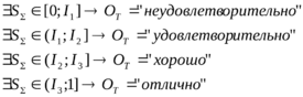 где 0 < I1 < I2 < …< In < 1 – границы оценочных интервалов; Oi, - оценка, которой характеризуются знания тестируемого в случае, когда накопленная им сумма баллов St попадает в интервал (Ii-1,Ii].