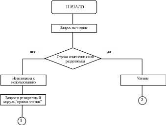 Если глобальное состояние строки "удаленно-разделенная", то резидентный модуль рассылает по списку всем модулям, имеющим копию строки, запрос на переход этих строк в состояние "невозможная к использованию". По получении этого запроса каждый из модулей изменяет состояние своей копии строки на "невозможная к использованию" и посылает подтверждение исполнения в модуль, инициировавший операцию записи. При этом в приостановленном модуле строка после исполнения записи переходит в состояние "удаленно-измененная".