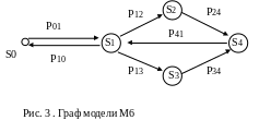 Модели ВС удобно представлять в виде направленных графов, в которых вершины графа соответствуют различным СМО, а направленные дуги – процессам перехода заявок из одной СМО в другую. Для модели М6 вышеописанный граф будет иметь вид представленный на рисунке 3.