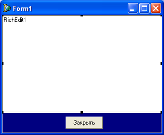 Разместить на форме объекты: Button1 и Panel1 из страницы Standart и RichEdit1 из Win32;