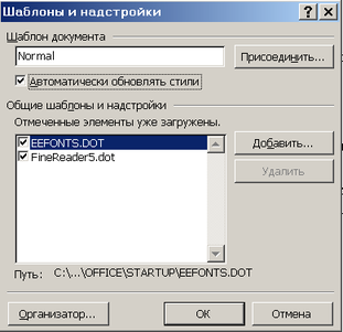 Рис.16. Диалоговое окно “Шаблоны и надстройки”