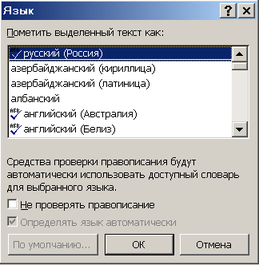 диалоговом окне “Язык” выбираем язык. По умолчанию выбран русский язык: