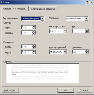 Там же есть кнопка “Табуляция”, которая вызывает диалоговое окно “Табуляция”.