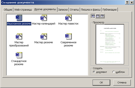 о умолчанию Microsoft Word использует шаблон Обычный (Normal), и именно им пользуется большинство пользователей программы. Чтобы получить доступ к другим шаблонам, выберите команду “Создать” в меню “Файл”. На экране отобразится диалоговое окно “Создание документа”: