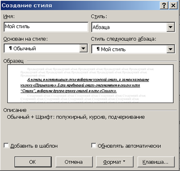 3. Щелкните на кнопке “Создать”, появится диалоговое окно “Создание стиля”: