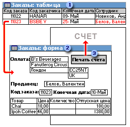 Форма может содержать кнопки, выполняющие печать, открывающие другие объекты или автоматически выполняющие другие задачи.