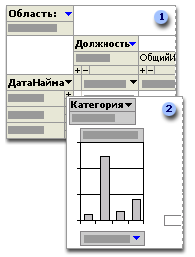Формы можно также открывать в режиме сводной таблицы или в режиме диаграммы для анализа данных. В этих режимах пользователи могут динамически изменять макет формы для изменения способа представления данных. Существует возможность упорядочивать заголовки строк и столбцов, а также применять фильтры к полям. При каждом изменении макета сводная форма немедленно выполняет вычисления заново в соответствии с новым расположением данных.