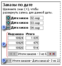 ... для отображения данных и панелей перехода по записям для следующего уровня группировки.