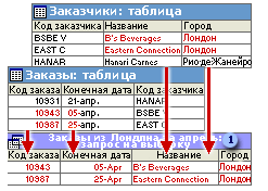 В этом запросе выполняется доступ к разным таблицам для отображения кода заказа, названия компании, города и даты исполнения для заказчиков из определенного города, сделавших заказы, которые следует выполнить в одном месяце.