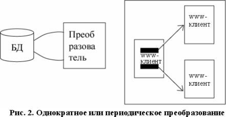 Из этих предпосылок возникает задача преобразования накопленных данных в гипертекстовые документы WWW, задача поддержки актуальности преобразованной структуры. Другими словами, задача предоставления WWW - доступа к существующим базам данных.