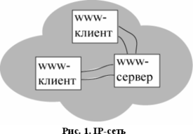 2. Выделенного информационного сервера - WWW-сервера, обеспечивающего предоставление гипертекстовых документов через IP - сеть в ответ на запросы WWW – клиентов (см. рис. 1).