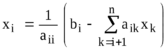 Теперь можно вычислить искомые величины xi , начиная с последнего, т.е. вначале находится xn , затем xn-1, xn-2, … , x1. Формула для вычислений имеет вид: