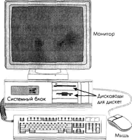 Обычно персональные компьютеры IBM PC (рис. 1) состоят из трех частей: системного блока, клавиатуры, позволяющей вводить символы в компьютер и монитора, для изображения текстовой и графической информации.