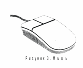 На настольных компьютерах наиболее часто используемым указательным устройством является мышь (рис. 3.) — манипулятор, представляющий собой небольшую коробочку с двумя или тремя кнопками, легко умещающуюся в ладони. Вместе с проводом для подключения к компьютеру это устройство действительно напоминает мышь с хвостом. При перемещении мыши по столу или иной поверхности на экране компьютера соответственным образом передвигается указатель мыши (обычно — стрелка). Когда необходимо выполнить то или иное действие, например выполнить пункт меню, на который установлен указатель мыши, пользователь нажимает ту или иную кнопку мыши.