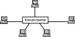 ля решения этой задачи подходит топология типа звезда (рис 1). Она обладает следующими преимуществами: большая скорость, возможность работы нескольких пар компьютеров в сети одновременно, высокая эффективность, каждая рабочая станция связана с сервером, возможность легкого наращивания компьютеров в сети.