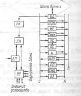 Конкретные микропроцессоры, как правило, не содержат всех узлов, показанных на рис. В этих случаях соответствующие функции могут выполняться программно, а в качестве некоторых специальных регистров могут использоваться РОН или ячейки памяти. В ряде микропроцессорных комплексов отдельные функциональные узлы могут выполняться в виде отдельных БИС.