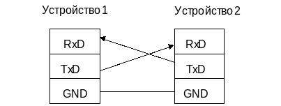 При этом два устройства-приемопередатчика должны быть соединены между собой тремя линиями, или мак называемым нуль-модемным кабелем: