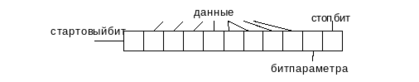 Передача начинается со стартового (нулевого) бита. Затем передается от 5 до 8 бит данных.
