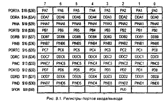 ° регистры входных контактов (Port A Input Pins). PINA; PINB, PINC и FIND.