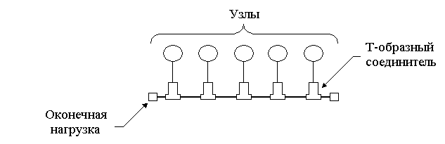 В первых сетях Ethernet, от которых происходит Fast Ethernet, все узлы были присоединены к единственному сегменту кабеля Т-образными соединителями