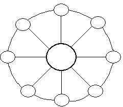 Существует три основных вида сетевой топологии: концентратор и луч (Hub and Spoke; часто ее называют просто “звездой”), кольцо и шина (рис.3). Компьютеры в Fast Ethernet подобно сети 10Base-T Ethernet физически соединены с использованием первой топологии. Мы будем использовать термин “звезда” для обозначения топологии “концентратор и луч” как более распространенный.