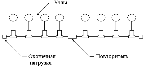Рис. 4. Шинная сеть Ethernet 10Base-2
