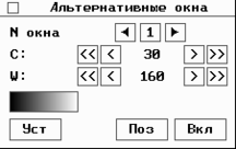 | Установка окон | установка значений параметров C и W из набора 1-5 в качестве текущих параметров | |