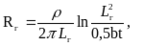 Расчётные сопротивления растеканию тока электродов - вертикального Rв и горизонтального Rг определяются по соотношениям /8/ :