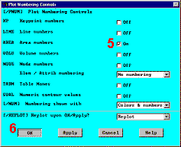 4. Включите нумерацию областей: Utility Menu > Plot Ctrls > Numbering