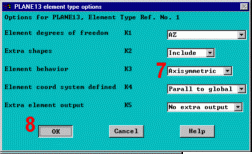 7. Измените Element behavior с plain strain на Axisymmetric. (Изменить поведение элементов с плосконапряженного на осесимметричное).