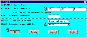 1. Main Menu> Preprocesso > Modeling> Operate> Scale> Areas